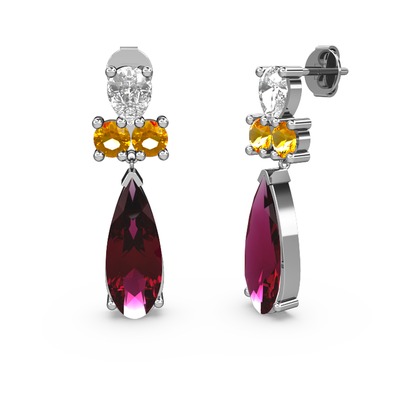 Rodolit garnet, swarovski ve sitrin 925 ayar gümüş küpe