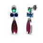 Rodolit garnet, yeşil kuvars ve lab safir 18 ayar beyaz altın küpe