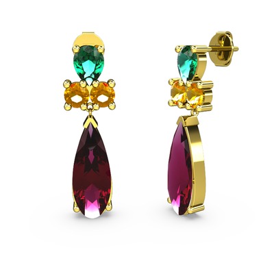 Rodolit garnet, yeşil kuvars ve sitrin 8 ayar altın küpe