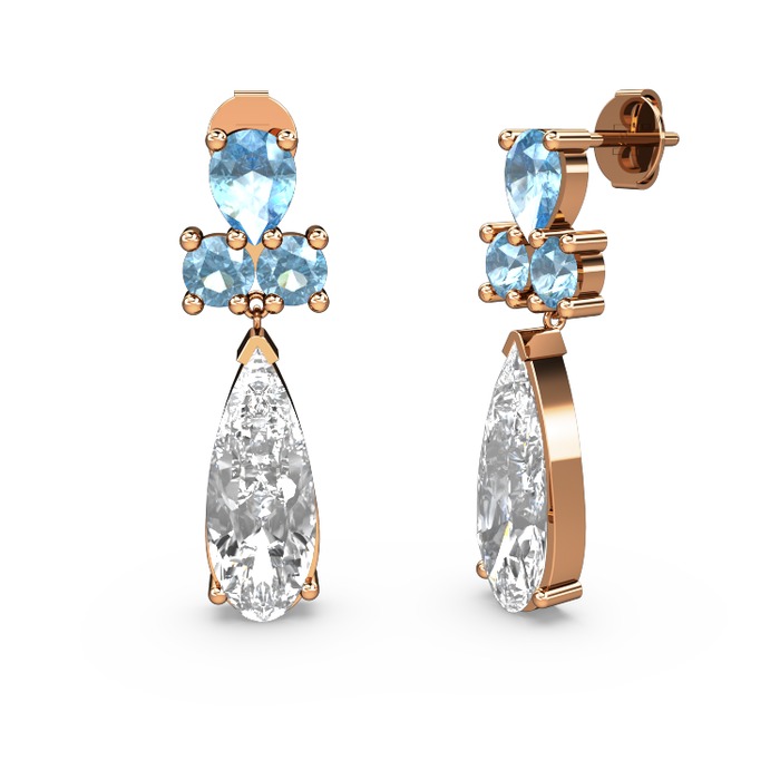 Swarovski ve akuamarin 925 ayar rose altın kaplama gümüş küpe