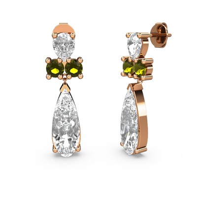 Swarovski, beyaz zirkon ve peridot 925 ayar rose altın kaplama gümüş küpe
