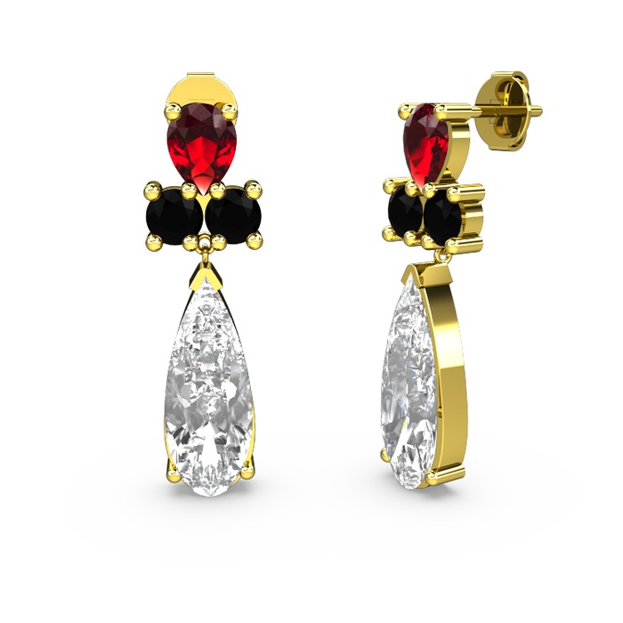 Swarovski, garnet ve siyah zirkon 8 ayar altın küpe