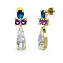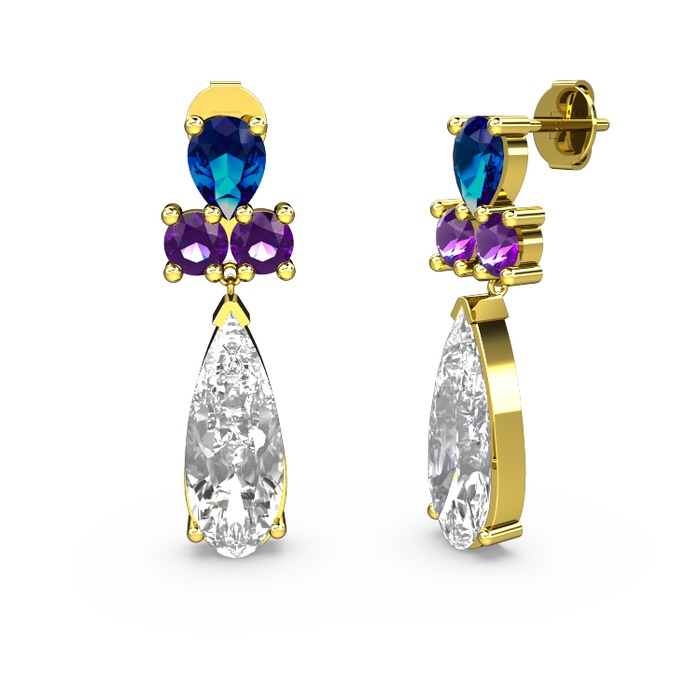 Swarovski, lab safir ve ametist 925 ayar altın kaplama gümüş küpe