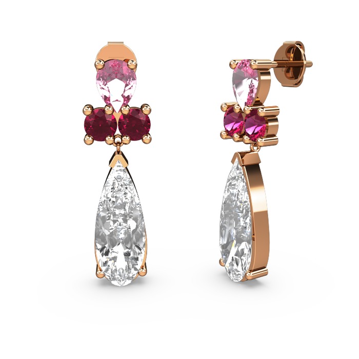 Swarovski, pembe kuvars ve rodolit garnet 925 ayar rose altın kaplama gümüş küpe