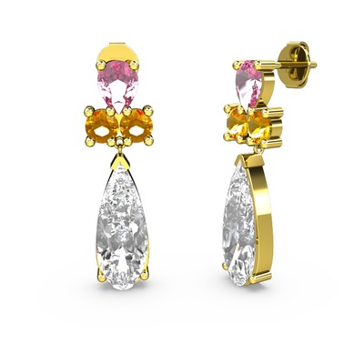 Swarovski, pembe kuvars ve sitrin 18 ayar altın küpe