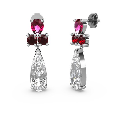 Swarovski, rodolit garnet ve garnet 8 ayar beyaz altın küpe