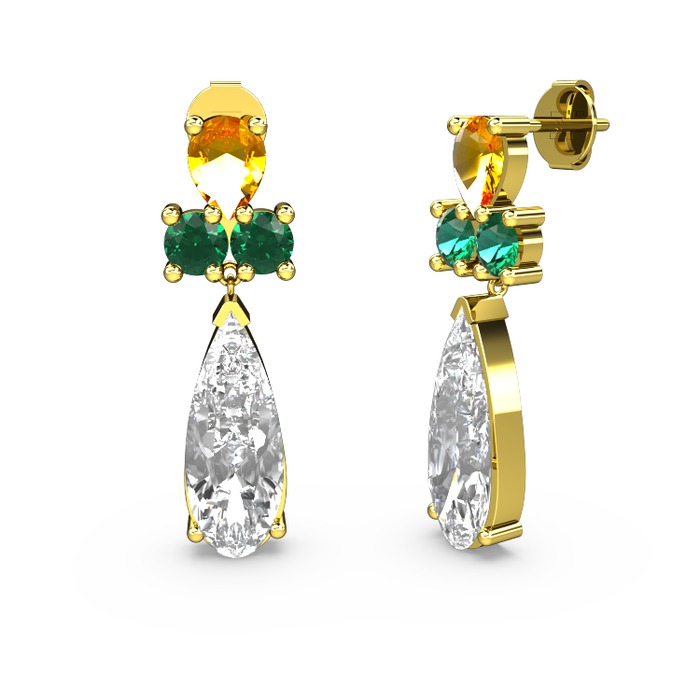 Swarovski, sitrin ve yeşil kuvars 18 ayar altın küpe