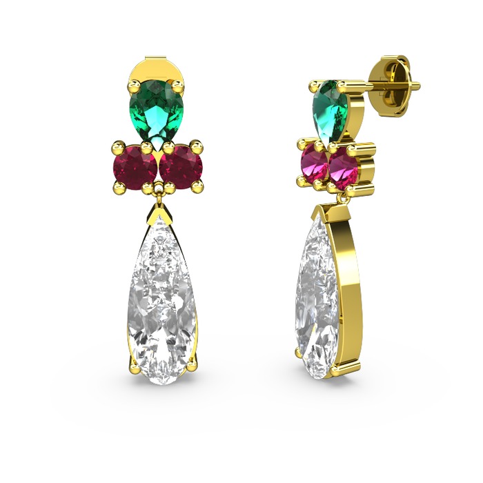 Swarovski, yeşil kuvars ve rodolit garnet 14 ayar altın küpe
