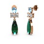 Yeşil kuvars, akuamarin ve beyaz zirkon 8 ayar rose altın küpe