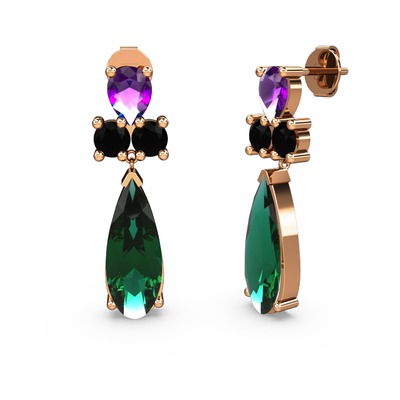 Yeşil kuvars, ametist ve siyah zirkon 925 ayar rose altın kaplama gümüş küpe