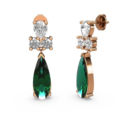 Yeşil kuvars ve beyaz zirkon 8 ayar rose altın küpe