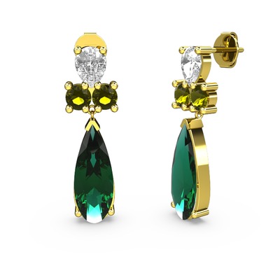 Yeşil kuvars, beyaz zirkon ve peridot 18 ayar altın küpe