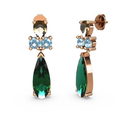 Yeşil kuvars, dumanlı kuvars ve akuamarin 18 ayar rose altın küpe
