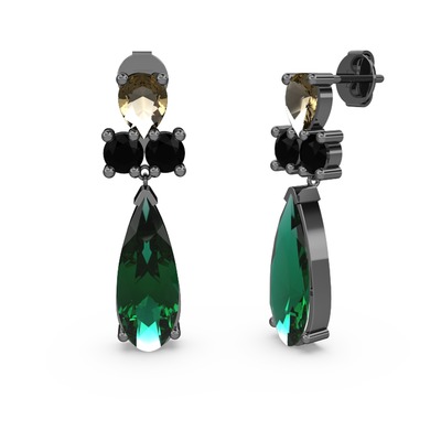 Yeşil kuvars, dumanlı kuvars ve siyah zirkon 925 ayar siyah rodyum kaplama gümüş küpe
