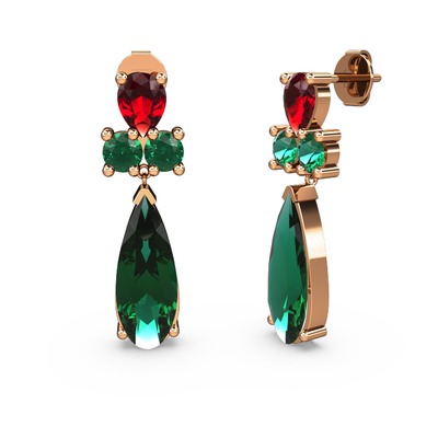Yeşil kuvars ve garnet 8 ayar rose altın küpe