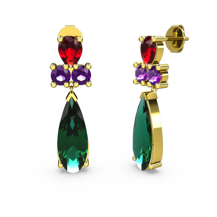 Yeşil kuvars, garnet ve ametist 925 ayar altın kaplama gümüş küpe