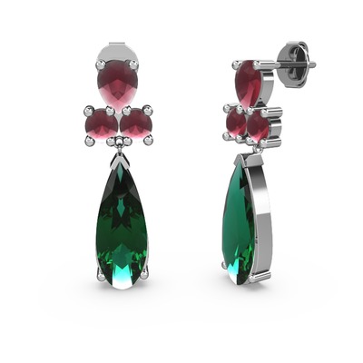Yeşil kuvars ve kök yakut 14 ayar beyaz altın küpe
