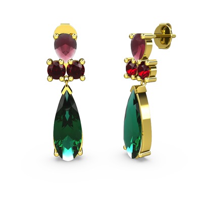 Yeşil kuvars, kök yakut ve garnet 8 ayar altın küpe