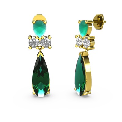 Yeşil kuvars, kök zümrüt ve beyaz zirkon 925 ayar altın kaplama gümüş küpe