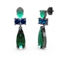 Yeşil kuvars, kök zümrüt ve lab safir 925 ayar siyah rodyum kaplama gümüş küpe