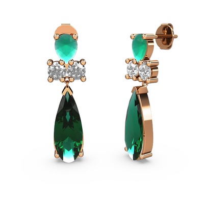 Yeşil kuvars, kök zümrüt ve swarovski 925 ayar rose altın kaplama gümüş küpe