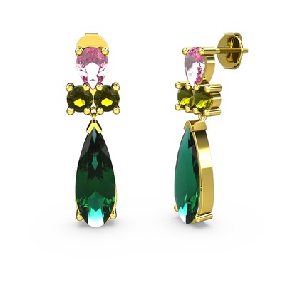 Yeşil kuvars, pembe kuvars ve peridot 18 ayar altın küpe