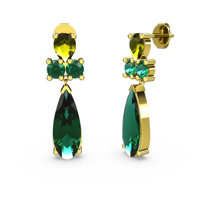 Yeşil kuvars ve peridot 14 ayar altın küpe