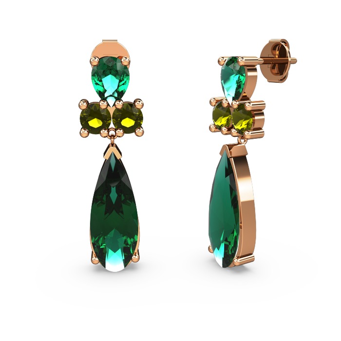 Yeşil kuvars ve peridot 8 ayar rose altın küpe
