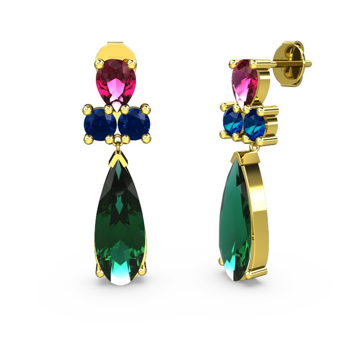 Yeşil kuvars, rodolit garnet ve lab safir 8 ayar altın küpe