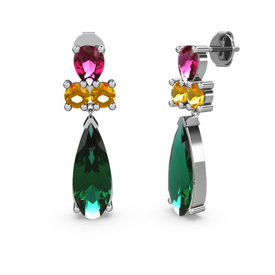 Yeşil kuvars, rodolit garnet ve sitrin 925 ayar gümüş küpe