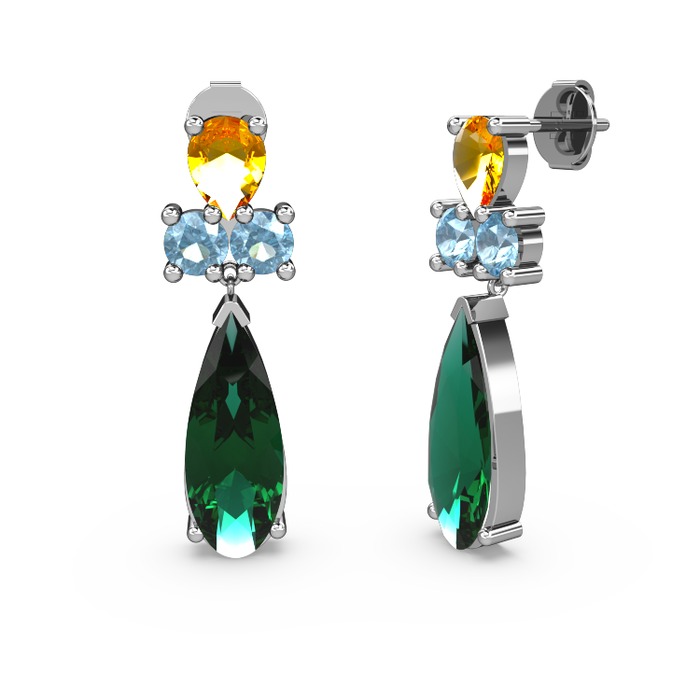 Yeşil kuvars, sitrin ve akuamarin 14 ayar beyaz altın küpe