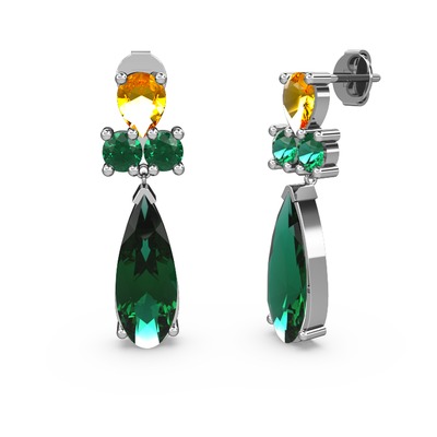 Yeşil kuvars ve sitrin 925 ayar gümüş küpe