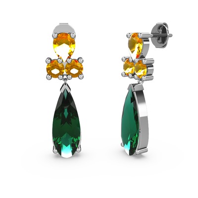 Yeşil kuvars ve sitrin 925 ayar gümüş küpe