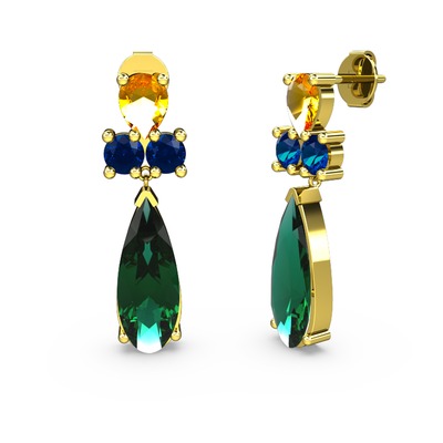 Yeşil kuvars, sitrin ve lab safir 8 ayar altın küpe