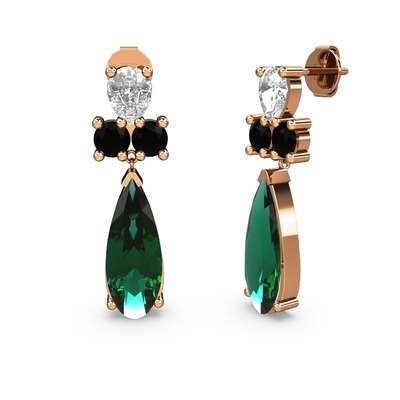 Yeşil kuvars, swarovski ve siyah zirkon 8 ayar rose altın küpe
