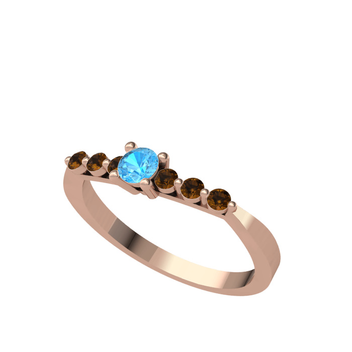 Akuamarin ve dumanlı kuvars 925 ayar rose altın kaplama gümüş yüzük