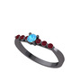 Akuamarin ve kök yakut 925 ayar siyah rodyum kaplama gümüş yüzük