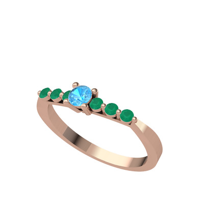 Akuamarin ve kök zümrüt 14 ayar rose altın yüzük