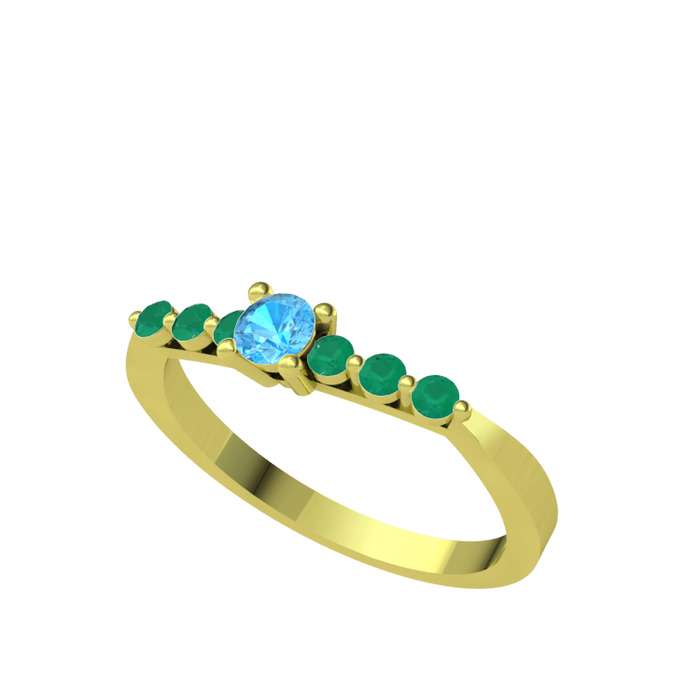 Akuamarin ve kök zümrüt 18 ayar altın yüzük
