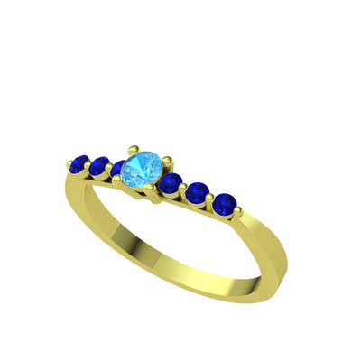 Akuamarin ve lab safir 14 ayar altın yüzük