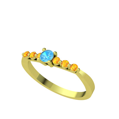 Akuamarin ve sitrin 18 ayar altın yüzük