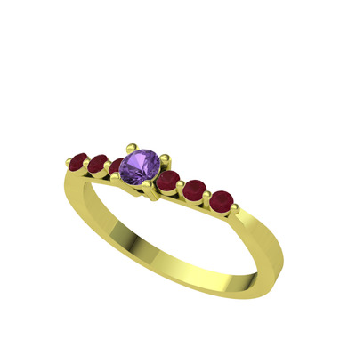 Ametist ve kök yakut 14 ayar altın yüzük