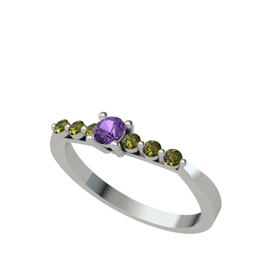 Ametist ve peridot 14 ayar beyaz altın yüzük