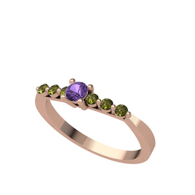 Ametist ve peridot 14 ayar rose altın yüzük