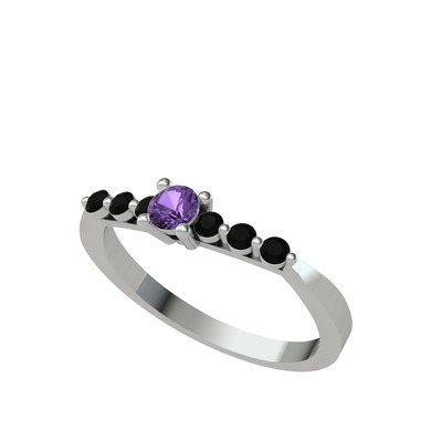 Ametist ve siyah zirkon 18 ayar beyaz altın yüzük