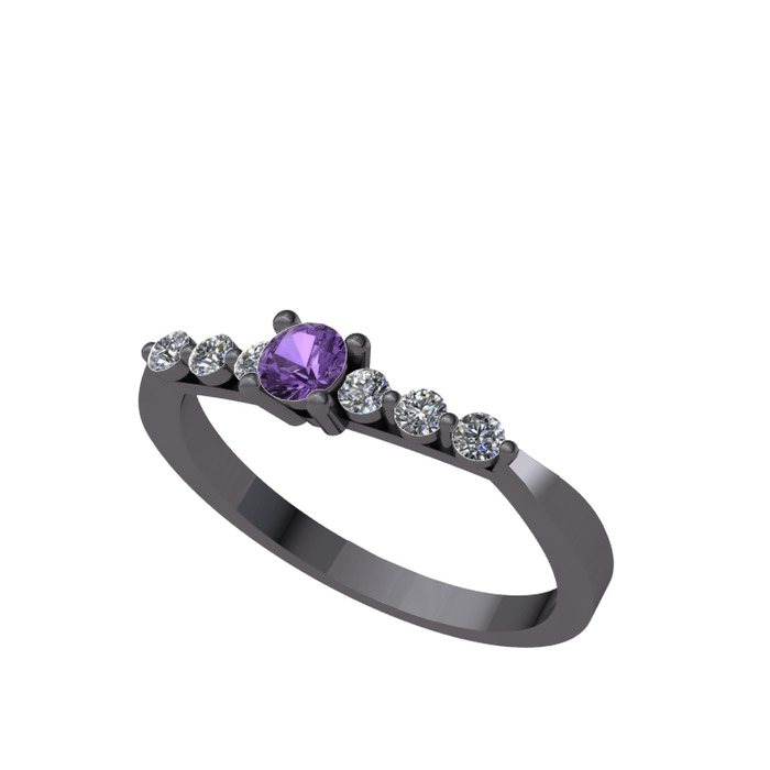 Ametist ve swarovski 925 ayar siyah rodyum kaplama gümüş yüzük