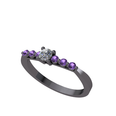 Beyaz zirkon ve ametist 925 ayar siyah rodyum kaplama gümüş yüzük