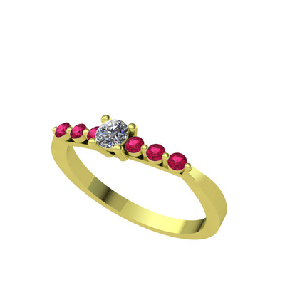 Beyaz zirkon ve rodolit garnet 18 ayar altın yüzük