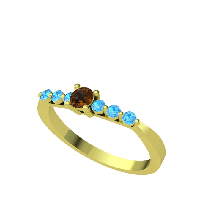 Dumanlı kuvars ve akuamarin 14 ayar altın yüzük