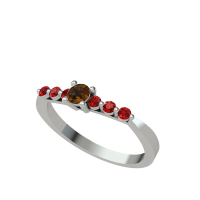 Dumanlı kuvars ve garnet 14 ayar beyaz altın yüzük